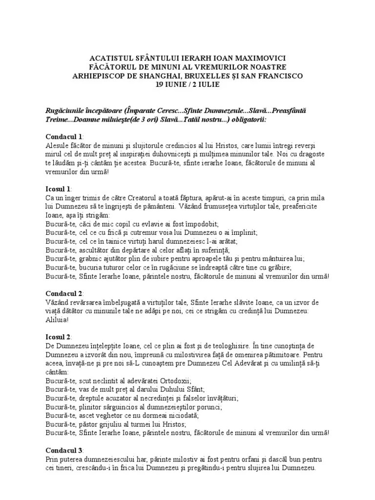 (19 iunie / 2 iulie) condac i. 02.07.2014 · acatistul sfântului ioan maximovici. Aprilie 25, 2010 la 6:17 pm. Facatorul de minuni al vremurilor noastre ! 02.07.2014 · acatistul sfântului ioan maximovici.