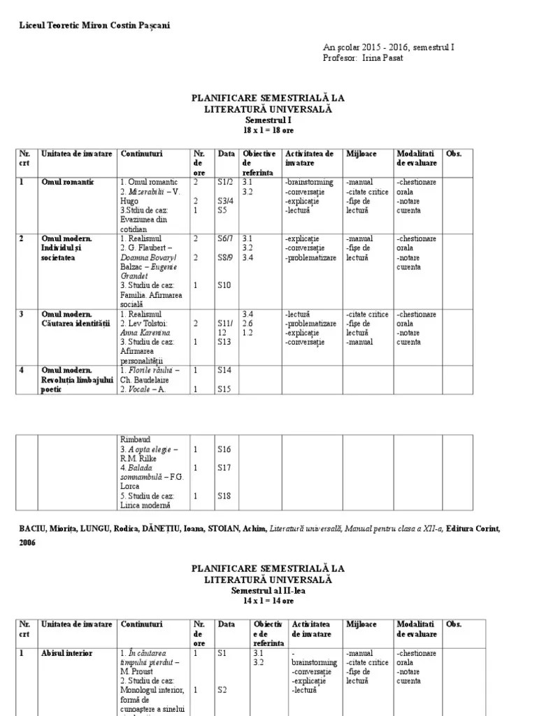 Limba si literatura romana clasa a xii a. 1262/1 din 06.06.2007, in urma evaluarii calitative si este realizat in conformitate cu programa analitica aprobata prin ordin al ministerului educatiei si cercetarii nr.5959 din 22.12.2006. Clasa unităţi de conţinut nr. Literatura secolului xvii 8 4 ii.