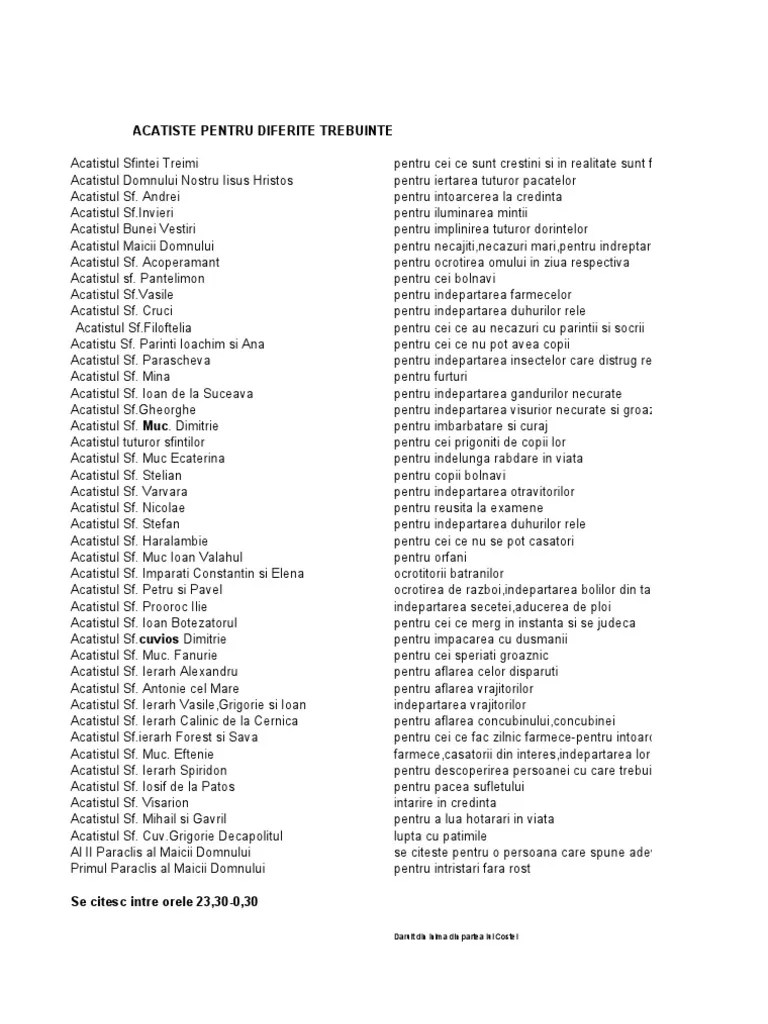 02/03/2021 · acatiste pentru diferite trebuinţe binecuvantarea domnului sa fie peste noi toti.si rugaciunile tuturor sfintilor sa ne ajute. 02/03/2021 · acatiste pentru diferite trebuinţe binecuvantarea domnului sa fie peste noi toti.si rugaciunile tuturor sfintilor sa ne ajute. Canon de rugăciune care se face în vreme de boli molipsitoare sau molime către preasfânta treime și către toți sfinții;. Aceste canoane de rugăciuni se recomandă a fi făcute unul o dată şi numai cu binecuvântarea şi sfatul părintelui duhovnic.