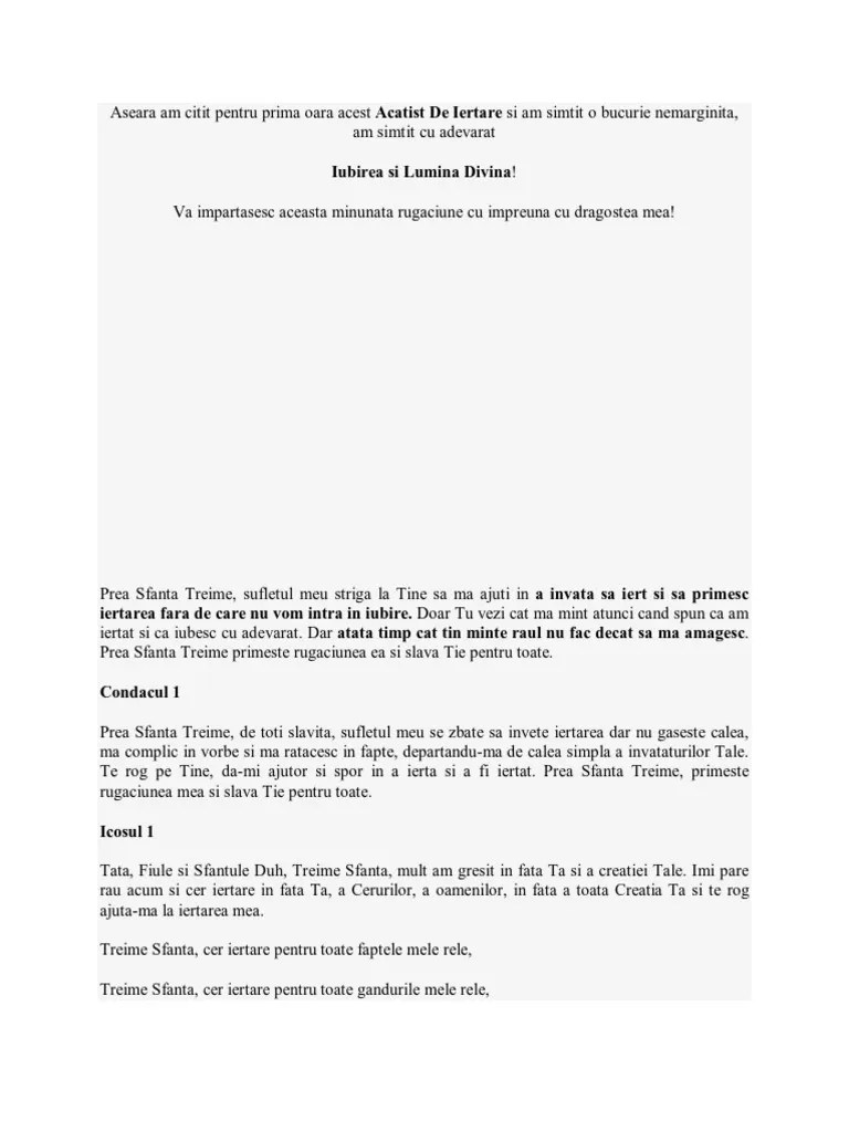 Inima mea rostește cuvinte mici și umile cerând iertare de la toți din cer și de pe pământ pentru greșelile știute și neștiute.. 21.01.2021 · treime sfântă cer iertare de la toate puterile cerești,. Cel mai bun rugaciune catre sfanta treime cuvantul ortodox În ziua dedicată sfintei treimi este recomandat să spui această rugăciune, care te poate ajuta când te simți doborât de greutățile vieții. Inima mea rostește cuvinte mici și umile cerând iertare de la toți din cer și de pe pământ pentru greșelile știute și neștiute.